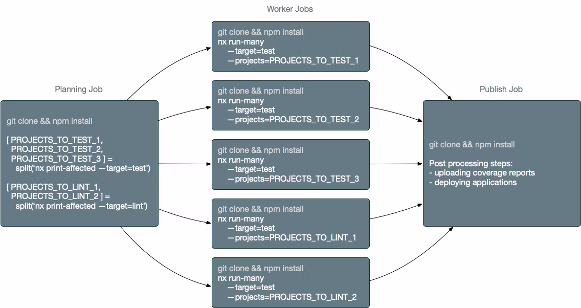 As your Nx workspaces grow, running CI on a single agent becomes unworkable. Nx's code change analysis and computation caching allows you to do the minimum amount of computation needed to verify that the PR is good to merge, but it only helps with the average case CI time. No matter how smart Nx is, in the worst case you need to rebuild/retest everything. That's why any sizable workspace has to distribute CI across multiple agents.